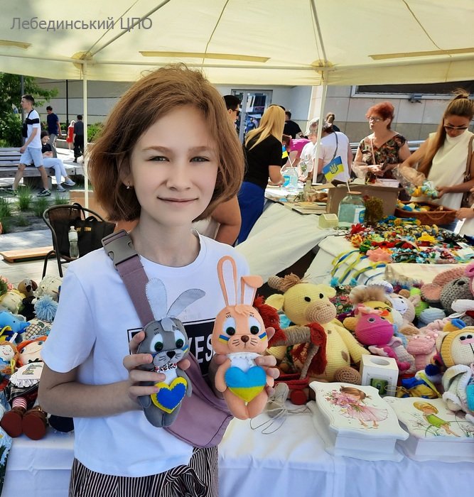 Вихованка гуртка «М'яка іграшка» Поліна Корчменко стала учасницею благодійного ярмарку, який організував місцевий волонтерський центр у місті Рівне.
