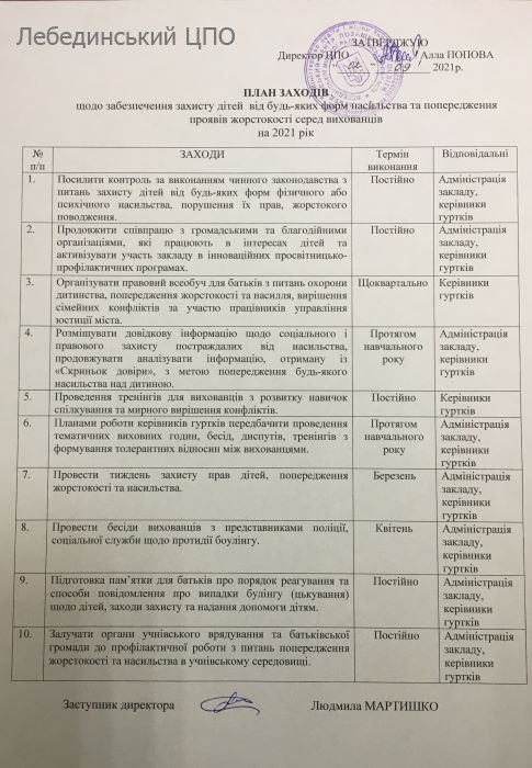 ЗАХОДИ, СПРЯМОВАНІ НА ЗАПОБІГАННЯ ТА ПРОТИДІЮ БУЛІНГУ