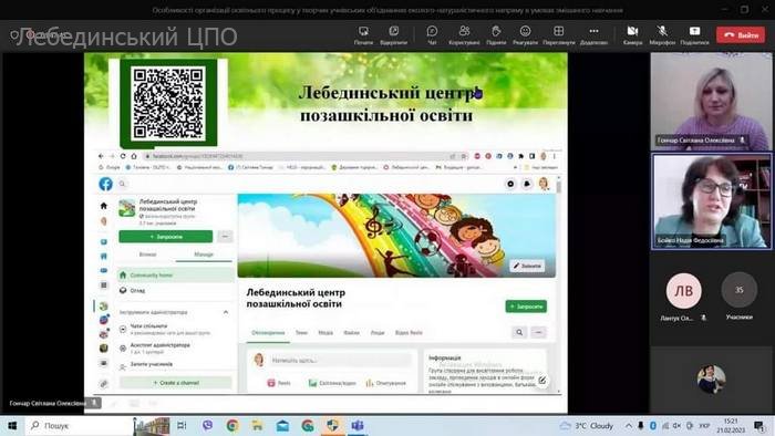 У межах обласного Тижня педагогічної майстерності на платформі дистанційної освіти Microsoft Teams відбулося засідання обласного методичного об’єднання з теми «Особливості організації освітнього процесу у творчих учнівських об’єднаннях еколого-натуралістичного напряму в умовах змішаного навчання». До заходу долучилися і педагоги нашого закладу. Завідуюча еколого-натуралістичним відділом Світлана Гончар презентувала досвід роботи «Нові форми організаційно-масової роботи еколого-натуралістичного спрямування під час змішаного навчання».