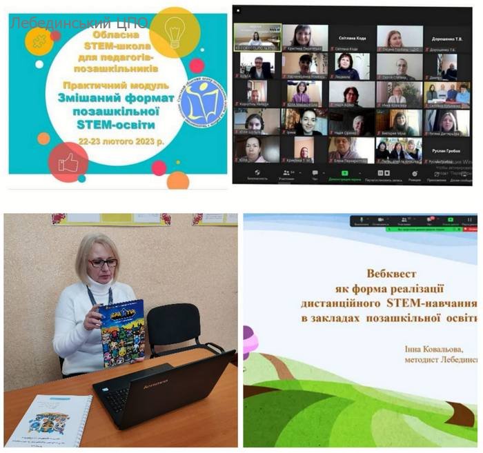 Продовжила роботу і обласна STEM-школа. Навчальний зміст практичного модуля передбачав презентацію освітніх продуктів, розроблених педагогами за допомогою інтернет-ресурсів. Методист закладу Інна Ковальова презентувала веб-квест як форму реалізації дистанційного STEM-навчання на прикладі інтерактивного квесту «Пригоди українських супергероїв».