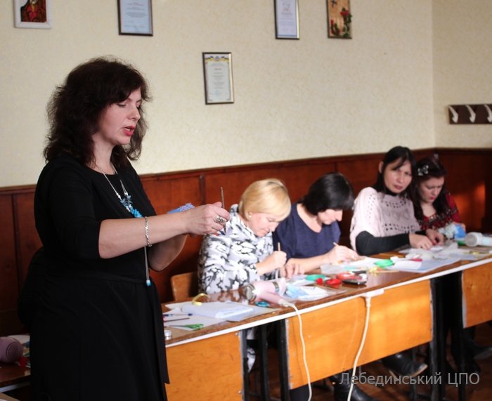 Як побудувати навчально-виховний процес у гуртку, щоб постійно підтримувати та задовольняти пізнавальний інтерес вихованців до обраного виду діяльності, зберігати сталим контингент вихованців гуртка протягом декількох років навчання? Своїми напрацюваннями з цього питання поділилася керівник гуртка-методист, керівник творчого об’єднання «Квілінг» О.К.Пронікова. Завершився методичний практикум цікавим майстер-класом від керівника гуртка «Образотворче мистецтво та ДПМ» О.І.Верхової та її обдарованих вихованок Білан Діани та Скакодуб Анастасії. Олена Іванівна презентувала власну систему роботи з обдарованими вихованцями, а дівчатка продемонструвала набутий рівень умінь і навичок під час занять обласних шкіл народних ремесел та креативних мистецтв.
