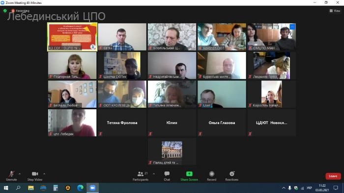 3 березня 2021 року в режимі відеоконференції відбулося засідання обласної профільної творчої групи педагогів гуртків початкового технічного моделювання з теми «Про стан та перспективи розвитку гуртків початкового технічного моделювання у сучасних умовах».