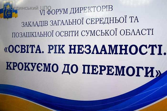 ОСВІТЯНСЬКИЙ ФОРУМ «ОСВІТА. РІК НЕЗЛАМНОСТІ. КРОКУЄМО ДО ПЕРЕМОГИ» 30 березня 2023 року в м.Суми відбувся VI освітянський форум директорів закладів загальної середньої і позашкільної освіти «Освіта. Рік незламності. Крокуємо до Перемоги», до якого долучилась і директор нашого закладу Алла Попова. Захід став потужним майданчиком для обміну думками, ідеями та планами.