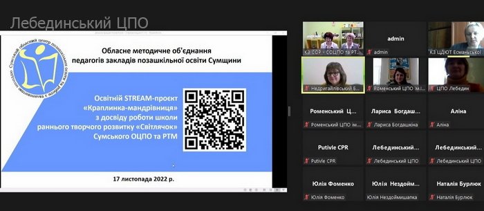 Нещодавно відбулося онлайн засідання обласного методичного об’єднання педагогів шкіл, студій, об’єднань раннього творчого розвитку дітей закладів позашкільної освіти з теми «Розвиток пізнавальних здібностей дітей дошкільного та молодшого шкільного віку в умовах закладу позашкільної освіти: інтегрований підхід».