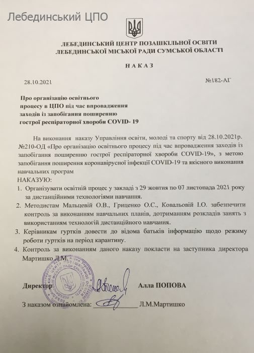 ПРО ОРГАНІЗАЦІЮ ОСВІТНЬОГО ПРОЦЕСУ В ЦПО ПІД ЧАС ВПРОВАДЖЕННЯ ЗАХОДІВ ІЗ ЗАПОБІГАННЯ ПОШИРЕННЮ ГОСТРОЇ РЕСПІРАТОРНОЇ ХВОРОБИ COVID-19