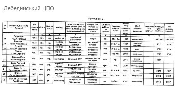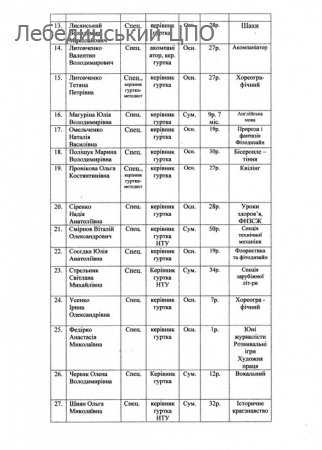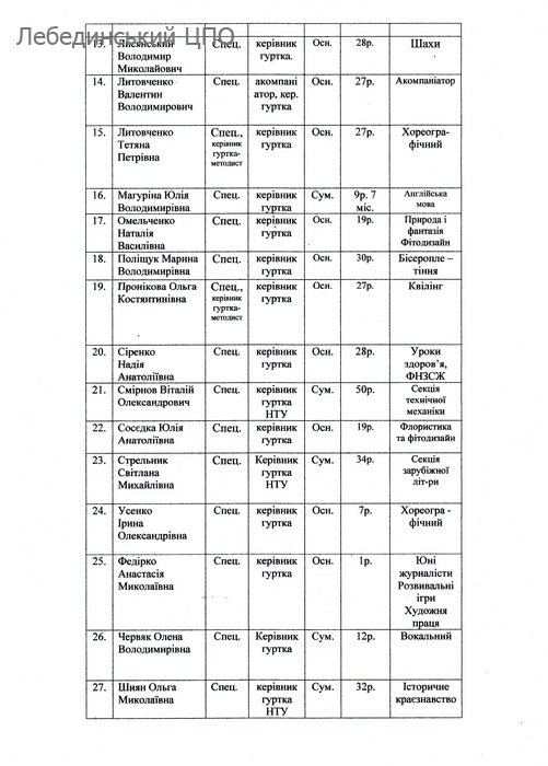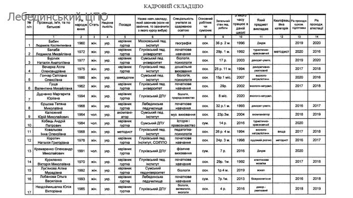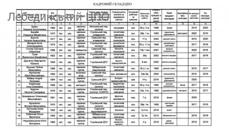 КАДРОВИЙ СКЛАД ЗАКЛАДУ