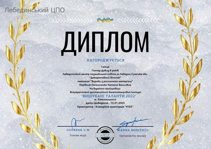 Вихованець гуртка «Виготовлення сувенірів» (керівник Наталія Омельченко) Гончар Давид посів перше місце в номінації «Вироби з рослинного матеріалу», а вихованки гуртка "Оригамі"(керівник Мирослава Губенко) Уст'ян Єва і Адаменко Діана зайняли І та ІІ місця.