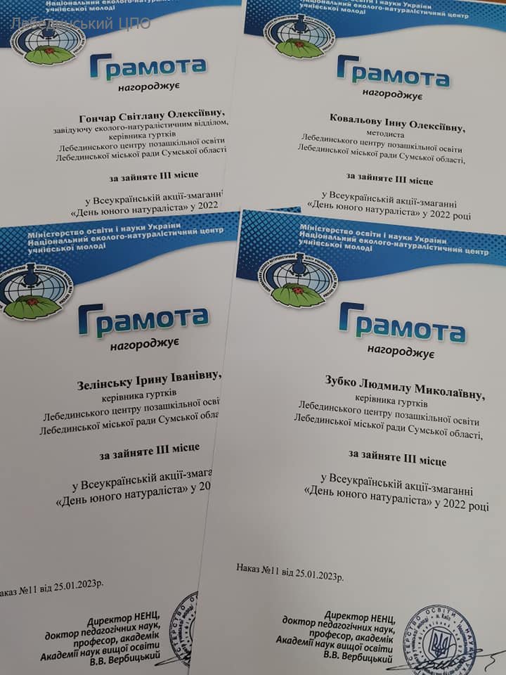 Óïðîäîâæ áàãàòüîõ ðîê³â íàø³ ïåäàãîãè ³ âèõîâàíö³ çàéìàþòü ïðèçîâ³ ì³ñöÿ ó Âñåóêðà¿íñüê³é àêö³¿-çìàãàíí³ «Äåíü þíîãî íàòóðàë³ñòà». Äÿêóºìî ÍÅÍÖó çà âèñîêó îö³íêó íàøî¿ ä³ÿëüíîñò³.
