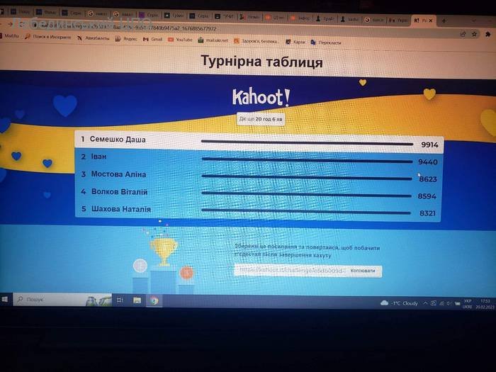 У межах Всеукраїнської дитячо-юнацької військово-патріотичної гри «Сокіл» вихованці гуртків «Джура» Семешко Даша (керівник Олександр Крамаренко), Данілов Назар (керівник Інна Безугла) та Федяй Юрій (керівник Людмила Балаба) взяли участь в обласній онлайн-грі «Україна в лютій боротьбі». За рейтинговою таблицею серед 155 учасників Семешко Даша посіла почесне ІІ місце. Вітаємо вихованку і керівника з призовим місцем, бажаємо успіхів під мирним небом України.
