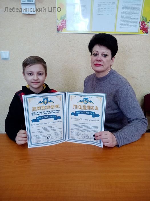 Вітаємо вихованця ЦПО Гончара Костянтина та його керівник Тетяну Шишняк із зайнятим ІІІ місцем у Всеукраїнському творчому конкурсі «Мій Шевченко». Бажаємо творчого натхнення та успіхів.