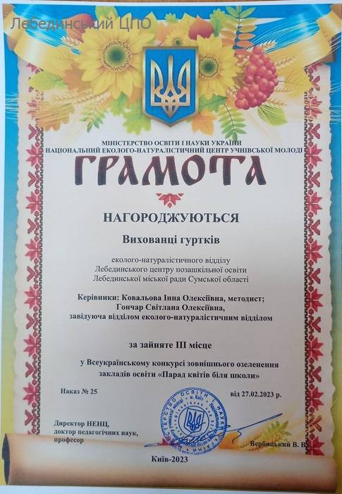 Завжди приємно працювати на результат. Чергові призові місця у Всеукраїнських конкурсах отримали наші вихованці гуртків еколого-натуралістичного напряму.