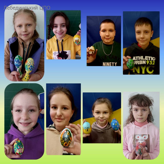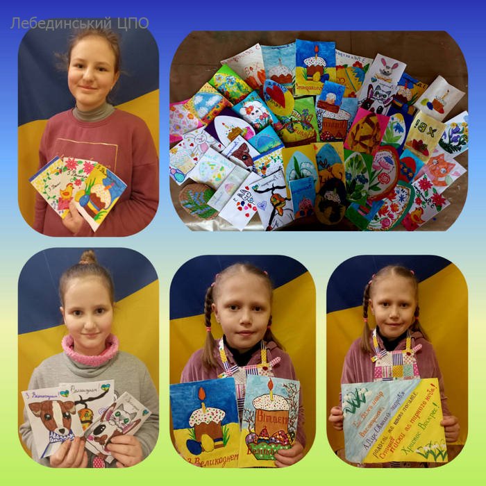 Напередодні Великодня вихованці гуртків «Образотворче мистецтво та ДПМ» (керівник Олена Верхова) та «Виготовлення сувенірів» (керівник Леся Іщенко) виготовили вітальні листівки, патріотичні крашанки, писанки, які є символами добра, світла і віри у щасливе мирне майбутнє. А гуртківці творчого об’єднання «Чарівний пензлик» (керівник Марина Поліщук) намалювали малюнки для наших захисників.