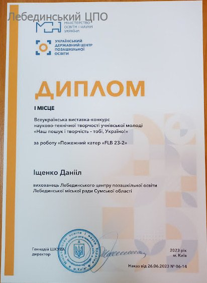 На виставку було представлено 293 роботи з 18 регіонів України. За підсумками конкурсу та на підставі рішення журі у розділі «Спортивно-технічне моделювання» дипломом І ступеня відзначено роботу Іщенка Данііла, вихованця гуртка «Судномодельний спорт» (керівник Сергій Бухтіаров).