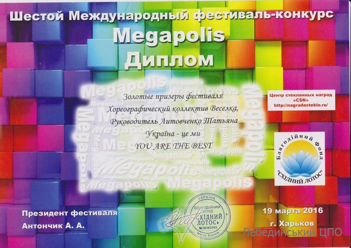 19 березня 2016 року в м.Харкові відбувся шостий Міжнародний фестиваль-конкурс хореографічного мистецтва «Megapolis», який входить до складу організації «Міжнародний танцювальний союз».