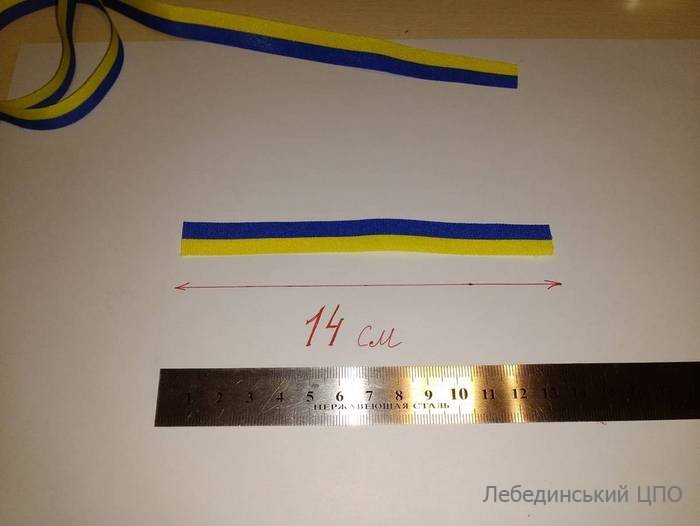 10. Відміряємо 14 см атласної стрічки в українському стилі.