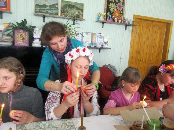 Âæå ñòàëî äîáðîþ òðàäèö³ºþ ïðîâîäèòè íà áàç³ Ëåáåäèíñüêîãî öåíòðó ïîçàøê³ëüíî¿ îñâ³òè ìàéñòåð-êëàñè ïî âèãîòîâëåííþ âèðîá³â-ñóâåí³ð³â. Òàê, âèõîâàíö³ ãóðòêà «Êâ³ë³íã» çàïðîñèëè äî ñåáå íà çàíÿòòÿ êåð³âíèêà ãóðòêà «Îáðàçîòâîð÷å ìèñòåöòâî òà ÄÏÌ» Îëåíó ²âàí³âíó Âåðõîâó òà ¿¿ òàëàíîâèòèõ ó÷í³â, ÿê³ ïðîòÿãîì ðîêó íàâ÷àëèñÿ ïèñàíêàðñòâó â îáëàñí³é øêîë³ íàðîäíèõ ðåìåñåë. Äâ³ ãîäèíè ö³êàâîãî, çì³ñòîâíîãî, òâîð÷îãî çàíÿòòÿ ïðîìàéíóëè ÿê îäíà õâèëèíà. ijòè ïåðåãëÿíóëè ïðåçåíòàö³þ ïðî ïèñàíêè òà íàâ÷èëèñÿ âèãîòîâëÿòè êðàïàíêè. Àòìîñôåðà òâîð÷îñò³, ñï³ëêóâàííÿ, òåïëî çàïàëåíèõ ñâ³÷îê çàëèøèëè ó êîæíî¿ äèòèíè âîãíèê äîáðà òà íà䳿. Âèõîâàíö³ ãóðòêà «Êâ³ë³íã» ùèðî âäÿ÷í³ ãîñòÿì çà íåîö³íåííèé äîñâ³ä, îòðèìàíèé ï³ä ÷àñ ïðîâåäåííÿ ìàéñòåð-êëàñó.