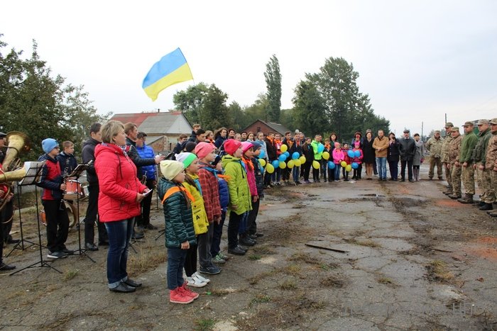 Бійцям було вручено запашний коровай як символ гостинності, червоні троянди від дівчат як знак любові, політ жовто-блакитних кульок як надія на мирне майбуття.