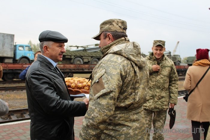 6 жовтня на залізничному вокзалі нашого міста представники влади, учнівська, студентська молодь та небайдужі лебединці зустрічали військовослужбовців із зони АТО, які прибули на ротацію. Під звуки духового оркестру школи мистецтв солдати та офіцери вишикувалися перед тими, хто всією душею підтримує їх.