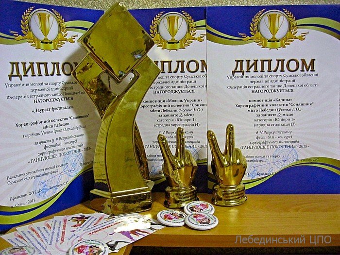 Юні танцюристи хореографічного колективу «Соняшник» (керівник І.О.Усенко) 21 жовтня 2018 року здобули чергові перемоги на Всеукраїнському фестивалі-конкурсі «Танцююче покоління-2018». Він проходив у місті Суми та зібрав чималу кількість учасників з різних міст України.