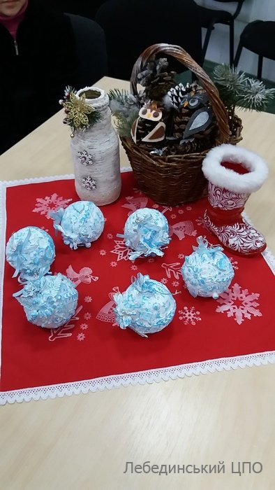 Роботу творчої майстерні проводила культорганізатор соціально-реабілітаційного відділу Несвіт Світлана Олександрівна. Слухачі школи навчилися виготовляти новорічні іграшки методом шпаклівки. На заняттях панувала атмосфера творчості, позитивного настрою та взаємодопомоги. Організатори та учасники школи креативних мистецтв готуються до нових творчих зустрічей.