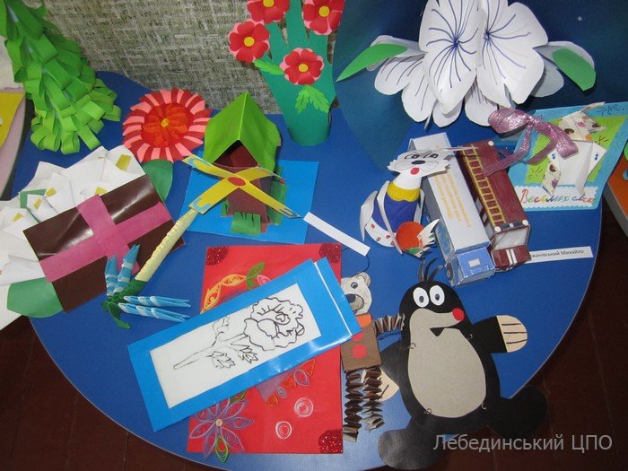 ðàìêàõ ðîáîòè àòåñòàö³éíî¿ êîì³ñ³¿ çàêëàäó, ç ìåòîþ îáì³íó äîñâ³äîì ðîáîòè, ï³äâèùåííÿ ïðîôåñ³éíî¿ ïåäàãîã³÷íî¿ ìàéñòåðíîñò³ êåð³âíèê³â ãóðòê³â áóëî ïðîâåäåíî â³äêðèòå çàíÿòòÿ ãóðòêà «Ïî÷àòêîâå òåõí³÷íå ìîäåëþâàííÿ» ç òåìè «Ñòâîðåííÿ îá’ºìíèõ ô³ãóð â òåõí³ö³ îðèãàì³ íà îñíîâ³ áàçîâèõ ôîðì «ìëèí», «ïîâ³òðÿíèé çì³é». Ôîðìà ïðîâåäåííÿ – «çàíÿòòÿ-ïîäîðîæ». Êåð³âíèê Êîðîñò³ëü Íàòàë³ÿ Ìèêîëà¿âíà ïîñòàâèëà çà ìåòó íàâ÷èòè ä³òåé âèãîòîâëÿòè îá’ºìí³ ô³ãóðè â òåõí³ö³ îðèãàì³ íà îñíîâ³ áàçîâèõ ôîðì; ðîçâèâàòè óâàãó, òâîð÷³ çä³áíîñò³; âèõîâóâàòè ïî÷óòòÿ ïàòð³îòèçìó, ÷óéíå ³ äáàéëèâå ñòàâëåííÿ äî ïðèðîäè òà ¿¿ ìåøêàíö³â.