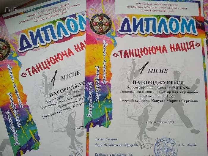 Активну участь у даному конкурсі взяв і хореографічний колектив «ERIDAN» (керівник Марина Капуста), який посів І місце в номінації «Вільна танцювальна категорія» за композицію «Мир над Україною».