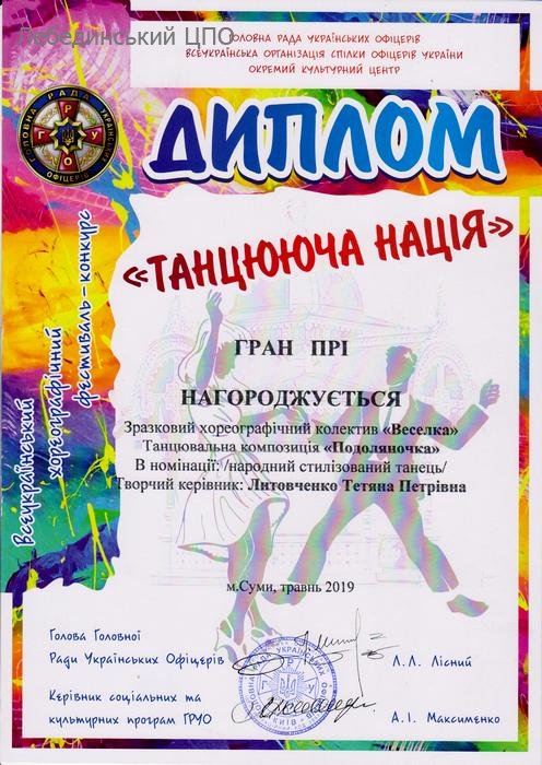 4 травня 2019 року у м.Суми відбувся Всеукраїнський хореографічний фестиваль-конкурс «Танцююча нація», в якому змагалися учасники танцювальних колективів з багатьох міст нашої держави.