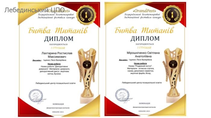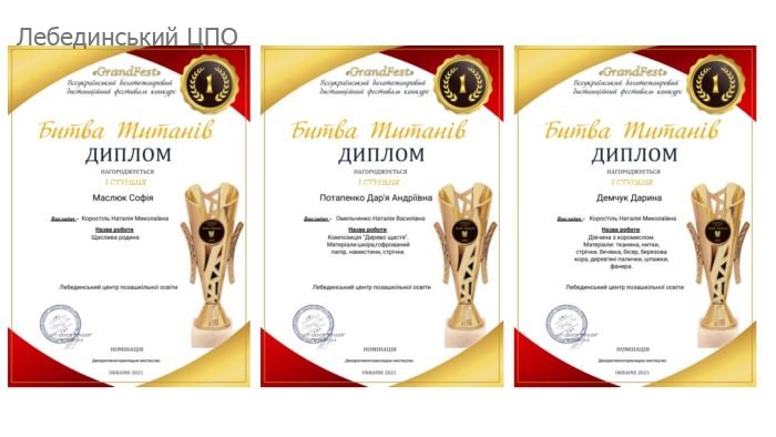 З метою популяризації дитячої та юнацької творчості в Україні, виявлення кращих і оригінальних особистостей був проведений Всеукраїнський дистанційний фестиваль-конкурс образотворчого та декоративно-прикладного мистецтва «Битва титанів». Активну участь у ньому взяли вихованці закладу Потапенко Дар'я, Демчук Дарина, Маслюк Софія, Лапоногова Анастасія, Матвієнко Владислав, Самсонова Ольга, Богун Софія, Карпенко Олег, Шевченко Олександра, Лахтарина Ростислав, Мірошніченко Світлана, Валюх Вікторія, Ляшко Катерина, Борисенки Олександра та Роман, Корчменко Поліна (керівники гуртків Наталія Омельченко, Наталія Коростіль, Олена Верхова, Леся Іщенко, Марина Поліщук, Анна Корчменко ). Діти були нагороджені дипломами І та ІІ ступенів, а їх керівники подяками за високий професіоналізм та майстерність.