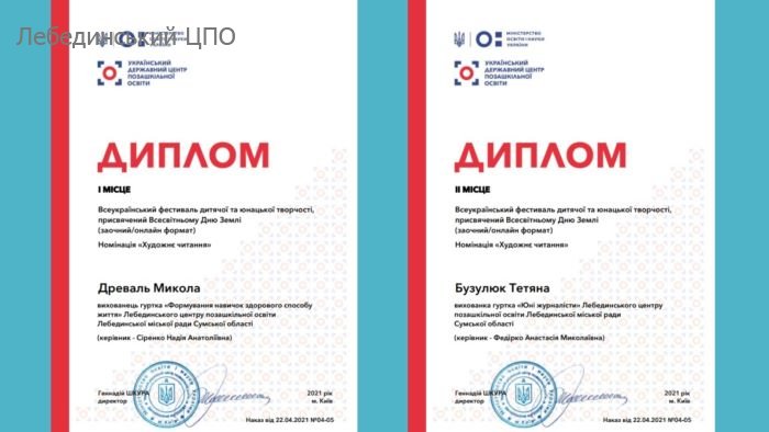 20-22 квітня 2021 року у місті Кропивницький відбувся ХХVI Всеукраїнський відкритий фестиваль дитячої та юнацької творчості, присвячений Всесвітньому Дню Землі з теми: «Здоров’я людства – відповідальність кожного».