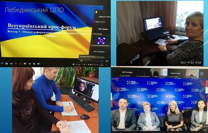В рамках Загальнонаціональної програми «Здорова Україна» та з нагоди Дня позашкілля 24 вересня 2021року за вектором V «Моделі неформальної освіти для здоров’я України і Європи» на базі УДЦПО відбувся Всеукраїнський крос-форум. Мета заходу: обговорити внесок позашкільної освіти як невід’ємного складника освіти в цілому і ЗПО. В межах крос-форуму відбулись панельні дискусії за такими напрямами: «Позашкільна освіта на сторожі здоров’я майбутнього», «Психічне і ментальне здоров’я – з малечі в доросле життя», «Від екологічного здоров’я до гармонійної особистості» та «Соціальне здоров’я: від синергії до симфонії». До участі долучились педагоги нашого закладу, директор Алла Попова, методист Оксана Гриценко, заввіділом Антоніна Піженко, керівник гуртка «Формування навичок здорового життя» Надія Сіренко та кульорганізатор Світлана Федірко.