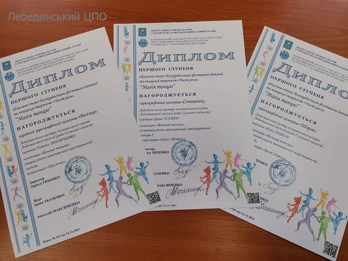 Танцювальні номери хореографічних колективів ЦПО відзначені дипломами І ступеню Сумського обласного центру позашкільної освіти. Бажаємо вихованцям та їх наставникам творчої наснаги та нових перемог.