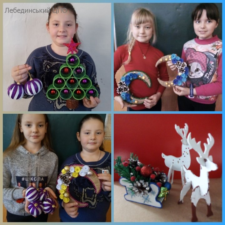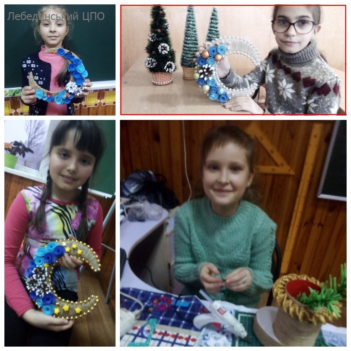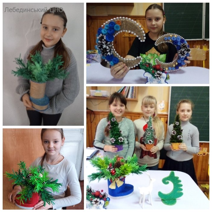 Передчуття свята – одне з найприємніших моментів самого свята, адже так хочеться встигнути зробити подарунки та сувеніри своїм друзям і рідним. Тож, вихованці гуртка «Квілінг» (керівник Ольга Пронікова) залюбки поринули в атмосферу підготовки до новорічних та різдвяних свят. Діти виготовили ялинкові прикраси, елементи декору, різдвяні чобітки, підсвічники, освоївши техніки роботи з фоаміраном, дротом та шпагатом. Вихованці долучилися до акції «Збережи ялинку», пропонуючи замість зрубаних креативні ялинки, новорічні композиції та букети.