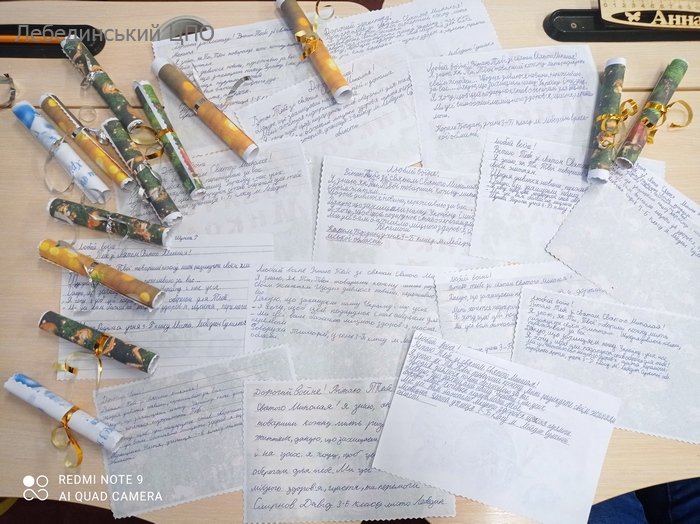 До новорічних свят вихованці гуртка «Початкове технічне моделювання» (керівник Наталія Коростіль) виготовили подарунки та написали привітання з Новим роком та Різдвом Христовим для воїнів-захисників.