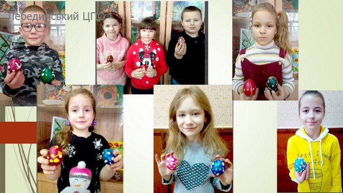 А вихованці гуртка «Народні умільці» (керівник Олена Верхова) виготовили крапанки для колективної роботи «Готуємось до Великодня».