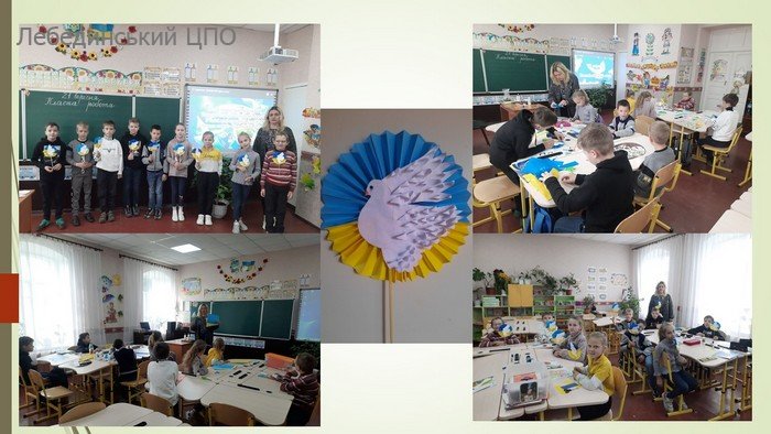 À âèõîâàíö³ ãóðòêà «Âèãîòîâëåííÿ ñóâåí³ð³â» (êåð³âíèê Íàòàë³ÿ Îìåëü÷åíêî) ñòâîðèëè êîìïîçèö³þ «Ãîëóá ìèðó» ÿê ñèìâîë ìèðó òà â³äðîäæåííÿ íàøî¿ êðà¿íè.