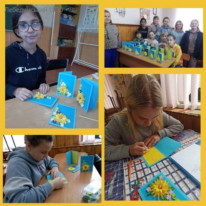 Òàêèìè òåïëèìè ñëîâàìè âèõîâàíö³ ãóðòêà «Êâ³ë³íã» (êåð³âíèê Îëüãà Ïðîí³êîâà) ï³äïèñàëè ëèñò³âêè, ùî áóëè âèãîòîâëåí³ âëàñíèìè ðóêàìè íàïåðåäîäí³ Äíÿ çàõèñíèêà Óêðà¿íè òà ïåðåäàí³ çàõèñíèêàì Ñóìùèíè.