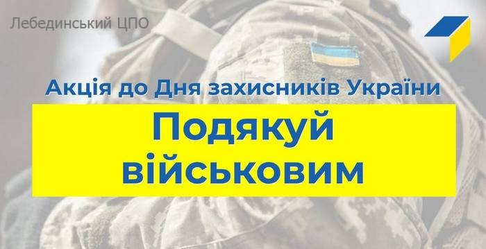В рамках освітнього проєкту «Кровна родина», з метою посилення виховного потенціалу закладів освіти щодо патріотичного виховання дітей та учнівської молоді на прикладах героїчних подвигів українського народу, з нагоди Дня захисників і захисниць України обласним центром позашкільної освіти та роботи з талановитою молоддю, обласною радою старшокласників започатковано благочинну акцію «Подякуй військовим».