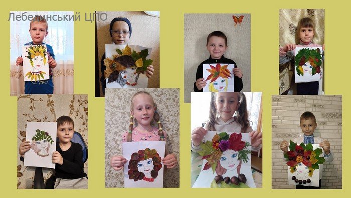 Осінь – це чудова та неповторна пора року. Вона, наче художник, розфарбовує в яскраві кольори плоди та листя. Аплікації з сухого листя та квітів – чудовий спосіб розкрити красу навколишнього світу і розвіяти втому після шкільних уроків. Палітра осінніх відтінків дає можливість проявити в дітей творчість і фантазію. Тож, вихованці гуртка «Виготовлення сувенірів» (керівник Наталія Омельченко) з задоволенням виконали аплікацію «Дівчина-осінь» і надіслали свої фотозвіти.