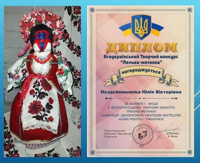 Наші педагоги популяризують позашкільну освіту нашої громади у Всесвітній мережі. Вітаємо творчу та креативну Юлію Нездоймишапку, керівника гуртків «Екоіграшка», із зайнятим І місцем у Всеукраїнському конкурсі «Лялька-Мотанка».